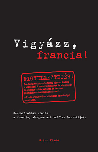 - A "Vigyázz, francia!" tartalmazza mindazt, amire szükséged lehet, bármit is akarj a franciákkal megdumálni. Ebben a könyvben nincsenek nyelvtani szabályok, gyakorlatok. Vannak viszont olyan kifejezések, amelyeket tényleg használnak: legyen szó sportról, divatról, szexről, számítógépről, telefonálásról, sms-ezésről, vagyis a mindennapjaidról.