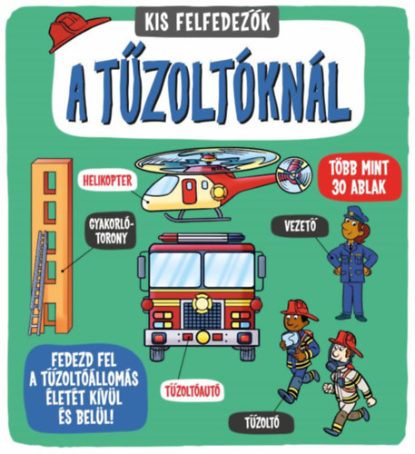 A Kis felfedezők - A tűzoltóknál egy izgalmas ismeretterjesztő könyv, amely a tűzoltók mindennapjait mutatja be interaktív formában. A felnyitható ablakok segítségével a gyerekek megtudhatják, hogyan működik egy tűzoltóállomás, milyen eszközöket használnak a tűzoltók, és hogyan zajlik egy bevetés. A részletes illusztrációk és a játékos tanulási lehetőségek garantáltan lekötik a kicsik figyelmét.