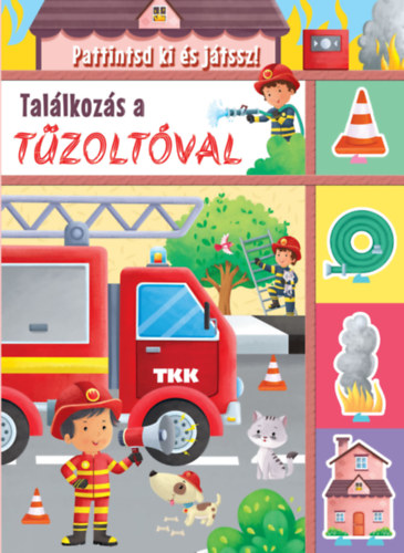 A tűzoltó bátorságáról szóló mese, minden páratlan oldalon ki-és szétszedhető, majd újból összerakható játékokkal.