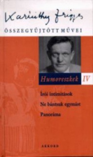 A sorozat 12. kötete három eredeti válogatás humoreszkjeit tartalmazza. Az 1919-ben megjelent Írói intimitások érdekessége, hogy azóta elkerülte a filológusok figyelmét, talán azért, mert társszerzőkkel - Szini Gyulával és Tábori Kornéllal együtt jegyezte a kis könyvecskét Karinthy. A magyar humort és szatírát megújító író e kis gyűjteményben visszatér az ősi, sok ezer éves hagyományhoz, és anekdotákat ír. Az 1921-es Ne bántsuk egymást még a háború atmoszférájában született humoreszkekkel van teli, az 1926-os Panoráma pedig ismét műfaji érdekességgel szogál: az írások többsége átmenet a humoreszk és a humoros elbeszélés között. Korábban jeleztük, hogy Karinthy sohasem tűrt semmiféle megkötést, a legkevésbé esztétikait vagy irodalomelméleti regulákat. Ezért is pontatlanok azok a megjegyzések, hogy "elaprózta tehetségét", "aprópénzre váltotta képességeit". Egy-egy humoreszkje többet ér, kerekebb és befejezettebb műalkotás, mint másnak esetleg egy kisregénye vagy regénye. Az általa eredetileg összeállított kötetek egyéniségének és művészetének sokszínűségét tükrözik.