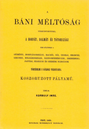 Korbuly Imre: A báni méltóság tekintettel a bánságok történelmi s közjogi viszonyaira (2012)
