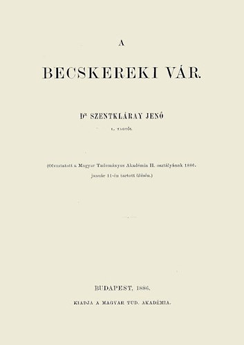 Szentkláray Jenő - Budapest : Magyar Tudományos Akadémia, 1886.