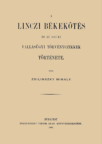 Zsilinszky Mihály: A linczi békekötés és az 1647-ki vallásügyi törvényczikkek története (2012)