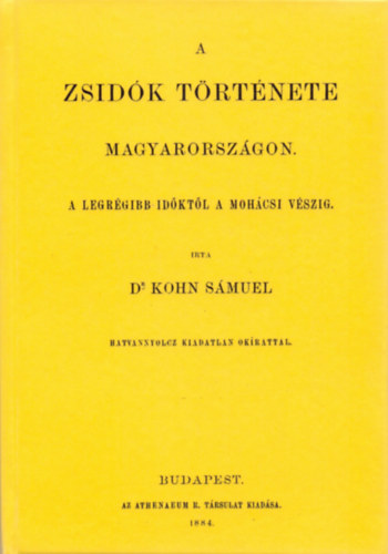 Írta Kohn Sámuel. – Budapest : Athenaeum, 1884. - Hasonmás kiadás