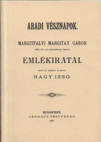 Margitay Gábor építészmérnök 1848-ban a magyar kormány szolgálatába állva honvédőrnagyként tevékenykedett a szabadságharc alatt. Fő tevékenységi területe Arad és környéke volt. Ennek köszönhetően szemtanúja volt a helyi eseményeknek, amelyek emlékirataiban jegyzett fel. Függelékül közli Lázár Vilmos 1849-iki honvéd ezredes aradi várfogságában kivégzése előtt irt emlékiratát. Sajtó alá rend és kiadta Nagy Izsó. Budapest : Légrády Testvérek, 1890.