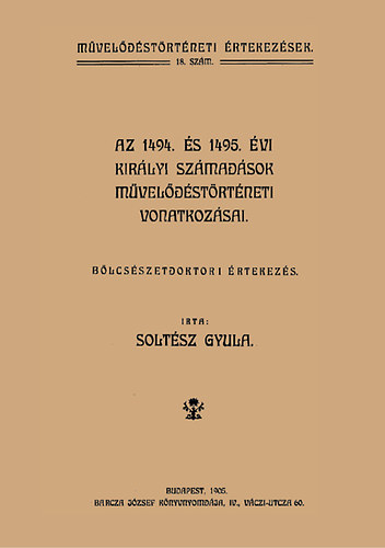 II. Ulászló király uralkodása, alatt 1494-ben és 1495-ben készült királyi számadások művelődéstörténeti vonatkozásait tárgyalja a kötet. Művelődéstörténeti értekezések című sorozat. 18. Budapest, Hornyánszky nyomda. 1905. Az ettől eltérő egyedi igényt is elkészítjük.