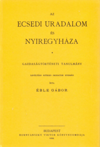 Az ecsedi uradalomhoz és az annak központjában állt egykori Báthory várkastély Ecsedhez tartozott Nyregyháza városa. Éble Gábor monográfiája az uradalom és benne Nyíregyháza történetét tárja fel.