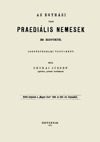 Ozorai József: Az egyházi vagy praediális nemesek és birtokuk - Jogtörténelmi tanulmány (2012)