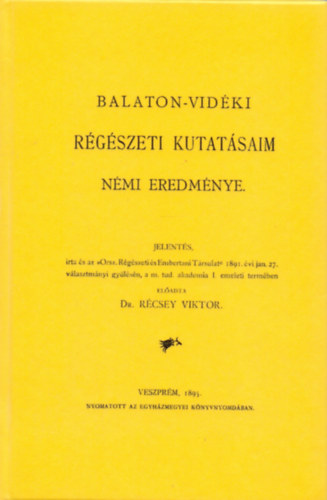 Récsey Viktor: Balaton-vidéki régészeti kutatásaim némi eredménye jelentés (2013)