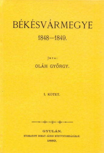 Oláh György gyulai főügyész, neves helytörténész a 19. század végén készítette el Békés megye 1848-1849. évi eseményeinek máig legalaposabb feldolgozását. A most reprint formában kiadott kétkötetes mű (Gyula, 1889-1892) első fele a forradalom következményeként megindult társadalmi változásokra helyezi a hangsúlyt, míg a második kötet az 1849. évi válságos napok, a megyét közvetlenül kevéssé, de az újoncállítás révén közvetve erősen érintő hadi események krónikáját adja. A jogász szerzőt különösen foglalkoztatják a forradalom közjogi hatásai, éppen ezért az első kötet a megye utolsó követeivel mint a rendi társadalom lezárásának szereplőivel foglalkozik, és az első, immár szabad döntési joggal bíró képviselőkkel záródik. A köztes fejezetekben szó esik a márciusi események hatásairól, a nép közt támadt zavargásokról, a vármegye rendfenntartó intézkedéseiről, a nemzetőrség megszervezéséről, az első népfelkelésről, valamint a képviselőválasztásról is. A közjogi, társadalomtörténeti érdeklődésű olvasók számára az első kötet számos érdekességet kínál, hiszen a szerző részletekbe menően idézi a korabeli levéltári forrásokat, hivatalos leveleket, parancsokat, jelentéseket, sőt még egy választási névsort is. A második kötet viszont hadtörténeti szempontból jelentős forrás, hiszen lakóhelyre lebontva, név szerint adja meg a hadi cselekményekben részt vevő Békés megyeiek névsorát, miközben kronologikusan haladva követi az egyre feszültebbé váló eseményeket.