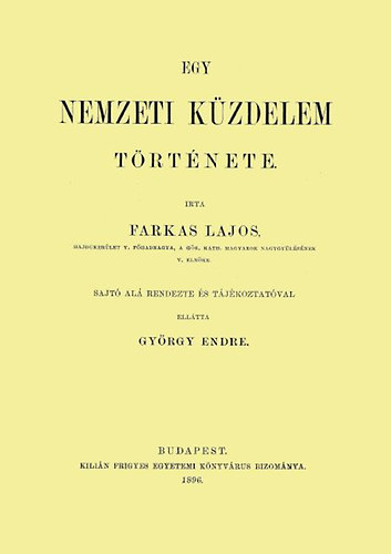 "Hazafias kötelességet vélek tehát teljesíteni, midőn szeretett magyar nemzetem egy kis, de tántoríthatlan hűséges részének, a tősgyökeres magyarajkú keleti szertartású katholikusoknak azon százados hazafias küzdelmét és működését írom meg, melyet azok, minden magasabb támogatást, minden anyagi segélyt nélkülözve, óriási akadályokkal küzdje azon legszentebb jogaik kivívásáért: hogy édes anyai magyar nyelvöket az oltárra tehessék, megfeszített igyekezettel kifejtettek és elkövettek mindent, hogy hitelveik ellenére elég jogtalanul istenitiszteletöknél mai napig méltatlanul használt idegen, szláv, illetve orosz és oláh nyelvek használatától véglegesen megszabaduljanak." Részlet az előszóból. Farkas Lajos ; sajtó alá rendezte és tájékoztatóval ellátta György Endre. Budapest : Kilián, 1896.
