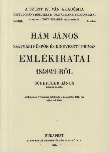 Hám János szatmári püspök és kinevezett primás emlékiratai 1848/49-ből