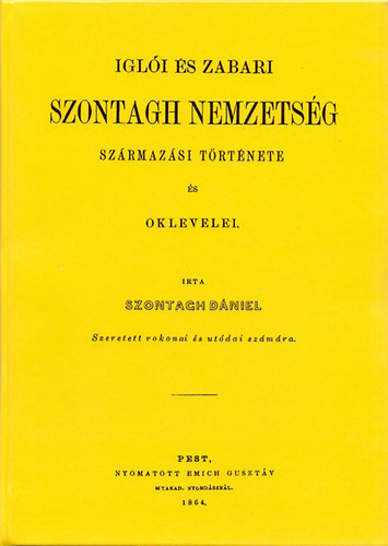 Szontagh Dániel: Iglói és zabari Szontagh nemzetség származási története és oklevelei (2012)