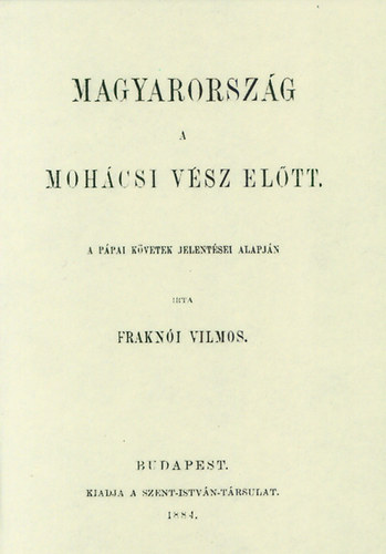 Fraknói Vilmos: Magyarország a mohácsi vész előtt a pápai követek jelentései alapján (2010)