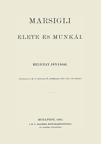 Beliczay Jónás: Marsigli élete és munkái (2012)