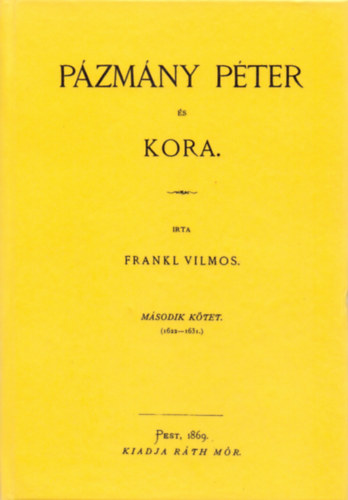 Frankl Vilmos. - Pest: Ráth Mór, 1869. Frankl ismertebb nevén Fraknói Vilmos történész és váradi kanonok három kötetes életrajza Pázmány Péter esztergomi érseknek, az ellenreformáció vezető alakjának történetét dolgozza fel.