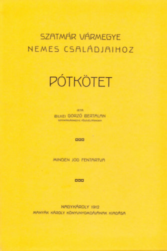 Bilkei Gorzó Bertalan: Szatmár vármegye nemes családjaihoz pótkötet (2012)