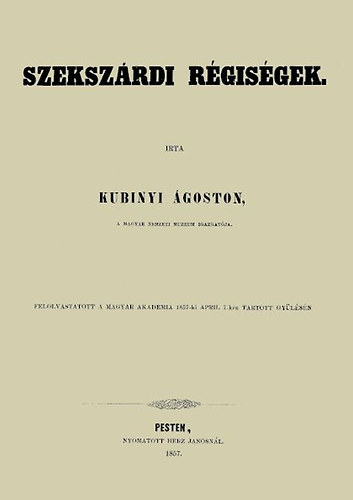 Írta: Kubinyi Ágoston, Pest : Herz, 1857. - Hasonmás kiadás