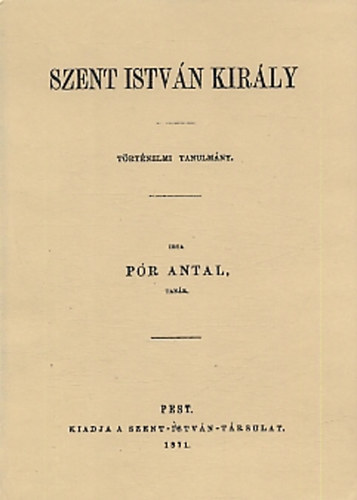 Pór Antal korai művei közé tartozik első szent királyunkról szóló monográfiája. Nem tárt föl új forrásokat, ellenben az ismert adatokat kísérelte meg új szempontok szerint elemezni. A nagy uralkodó születésétől haláláig, illetve temetéséig ívelő életrajz ugyanakkor izgalmas elbeszélésként is olvasható, hiszen a szerző bőségesen él a korabeli történetírástól nem idegen prózaepikai díszítőelemekkel, a képzelet szülte színesítő részletekkel.