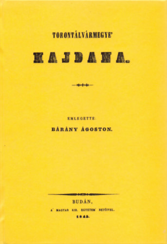Az eredetileg 1845-ben megjelent könyv hasonmás kiadása. Bárány Ágoston műve két részben tárgyalja a hajdani Torontál vármegye történetét. Az első rész a megye történetét az őskortól a 1840-es évekig, a második rész a legfontosabb okmányok teljes szövegű kiadását tartalmazza.