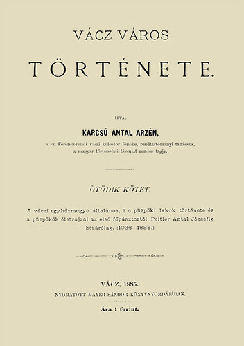 Karcsú Antal Arzén: Vácz város története V. (2012)