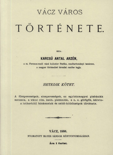 Karcsú Antal Arzén: Vácz város története VII. (2011)