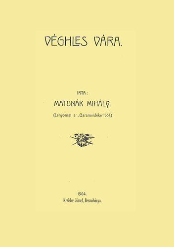 Végles vára 1368 előtt épült Nagy Lajos király vadászkastélyának. A várat és a települést 1393-ban említik először. A zólyomi ispánsághoz tartozó királyi vár volt. Királyné birtoka, a véglesi uradalom központja. Az 1440-es években Giskra birtokolta, de Mátyás visszafoglalta tőle. A 16. században megerősítették és a török ellen kiépített végvárrendszer része lett. 1605-ben Rhédey Ferenc ostrommal foglalta el, az 1670-80-as években Thököly kétszer is elfoglalta. 1690-től az Eszterházi család birtoka volt, akik fényűző lakhelyet alakítottak ki benne.